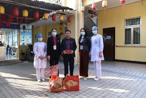 廉江市人民医院党委委员、工会主席苏小妹率领相关工作人员慰问为了抗疫防疫响应就地过年不回家员工,为他们送上慰问品和祝福卡,感谢他们对医院发展做出的积极贡献和关心支持,衷心祝愿他们新春愉快、身体健康!