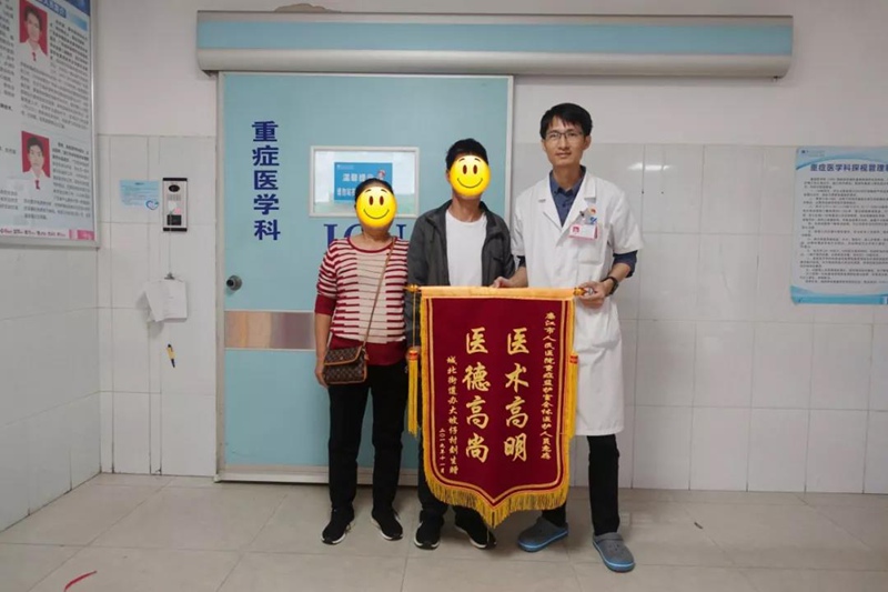 11月15日上午,患者刘某在家属陪同下,双手捧着一面写着“医术高明,医德高尚”字样的锦旗送到急危重症医学部刘华春主任及其团队手上,患者怀抱着一颗重获新生激动的心说道:“感谢你们给了我第二次生命”。