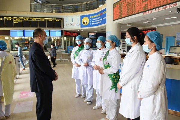 2月12日,大年初一,廉江市人民医院副院长苏伟青带领相关职能部门负责人一早便来到了发热门诊、预检分诊、门诊、急诊、ICU、麻醉手术室、放射科等科室,向奋斗在一线的医务人员送去了节日的问候。并在现场查看疫情防控工作落实情况以及医务人员的防护状况,要求值班的医务人员要严格遵守操作规程,不能出现误诊漏诊,避免发生院内感染,为全市人民生命安全和身体健康保驾护航,让全市人民度过一个既温暖又安心的新春佳节。(文/钟成昆 图/陈俊任)