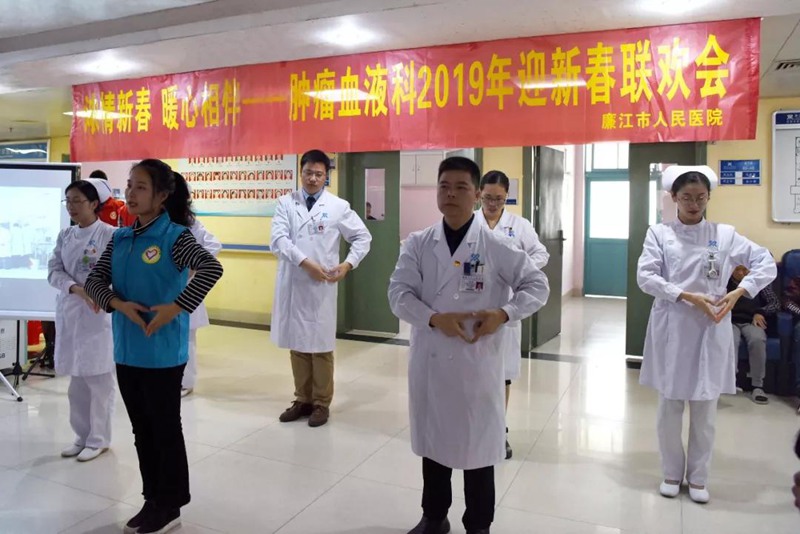 1月25日,我院社工部联合肿瘤血液科开展了“浓浓新春,暖心相伴”肿瘤血液科2019年迎新春医患联欢会,院党委委员、副院长赵延龙,院党委委员、党委办主任钟洁云,护理部、社工部、肿瘤血液科全体医务人员与患者、家属70多人欢聚一堂,包饺子、玩游戏迎新春。