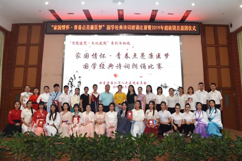 为传承国学经典,引领团员青年通过诵读经典古诗词,感受祖国传统文化的博大精深,推动我院文化建设,并让退团的团员感受到团组织的温暖,进一步坚定理想信念,近日,我院团委在“思想建党·文化建院”的理念指导下,举办国学经典诗词朗诵比赛暨2019年“退团不褪色,青春永飞扬”超龄团员退团仪式。