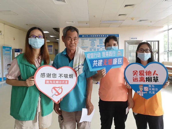 在第三十三个世界无烟日即将来临之际,为加强医院控烟履约工作,营造无烟环境,提高市民对烟草使用和接触二手烟雾有害及致命影响的认识, 5月29日上午,廉江市人民医院新时代文明实践点、控烟办、社工部、湛江市悦好社会工作服务中心联合组织开展了“无烟之爱,健康就医”世界无烟日宣传活动。