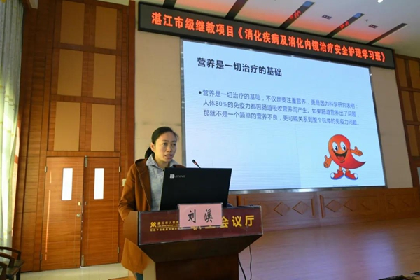 学习班上,肖梅与孙相钊进行精彩讲课,耐心解答学员们的提问,与学员们进行充分的探讨与交流。除了理论授课,专家们还深入胃镜室,现场操作演示,介绍实际操作中的注意事项及操作技巧,对学员们进行了“手把手”教学。廉江市人民医院护理部副主任吴章玲及消化内科护理人员围绕有效沟通与病患投诉管理、软式内镜新规范执行的重点与难点、幽门螺杆菌感染、无痛内镜患者的安全管理及规范肠道清洁、肠内营养与胃造瘘术护理等方面进行授课,有效提升护理人员内镜治疗术前准备、术中配合、术后护理、健康宣教、安全管理水平,学员们纷纷表示受益匪浅。