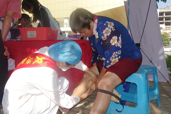 活动现场,医务志愿者热情接待群众,为群众检查身体,根据群众身体情况给予健康指导,解答常见病、多发病的预防诊治问题,科普中医知识并为有需要的群众进行中医护理非药物治疗,包含艾灸、针灸、穴位贴敷、磁感应等。医务志愿者还现场开展急救技能宣教,手把手向市民传授心肺复苏急救技能,受到市民群众的一致好评。此次活动为群众测量血压50人,测血糖30人,磁感应检查5人,拔罐2人,针灸1人,艾灸4人,中医诊脉12人,派发健康知识宣传单85份。