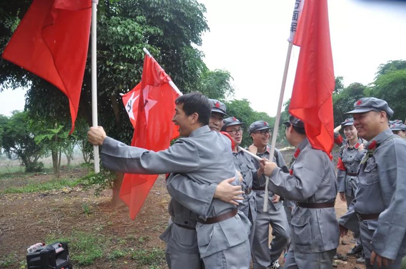 当日,院党委委员、副院长李树裕与院党委委员钟洁云以普通党员身份参加了支部活动。在拓展活动基地,全体党员换上红军服,面向鲜红的党旗,庄严地举起右手重温了入党誓词。活动以红军长征到了贵州召开遵义会议后为背景,通过三公里强度行军、飞夺“泸定桥”、跨过大草地、穿越烽火线、四个方面军会师和实战对决等环节“重走长征路”,让党员们在长征缩影中“亲身体验”当年红军长征的互相帮助、团结一致、排除万难、不怕牺牲的革命精神和集体主义精神,让党员们心灵得到洗礼,精神得到升华,充分认识到今天祖国的尊严、繁荣、强大是先辈们用鲜血、用汗水换来的。