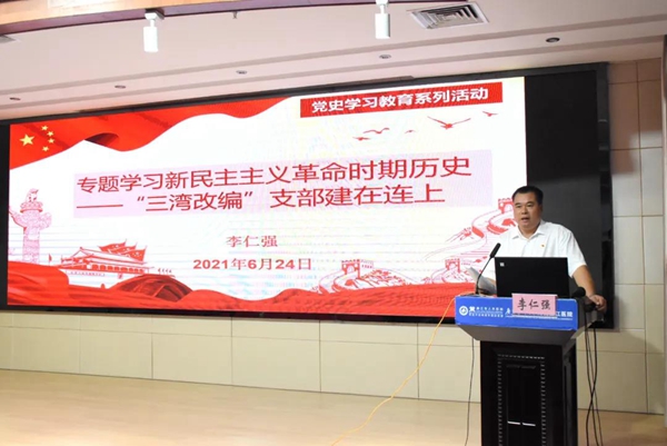 近日, 廉江市人民医院党校立足本院实际,开展了一堂深入人心的党课。党委委员、工会主席李仁强以《专题学习新民主主义革命时期历史——“三湾改编”支部建在连上》为题开讲。
