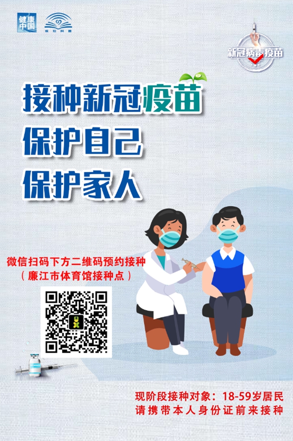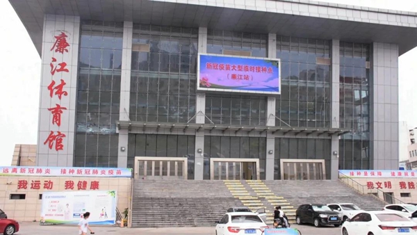 新冠病毒疫苗大型临时接种点(廉江站)设立在廉江体育馆,由廉江市人民医院承担,其中开设32个接种单元,配备候诊区、体检区、登记区、等候区、接种区、留观区、医疗救治区等功能分区。有接种需求的市民可在线上预约,并按照预约时间前往接种点,有序接种疫苗。目前阶段只接种18-59周岁居民,接种日上午08:00—11:30和下午14:30—17:30时间段接种。