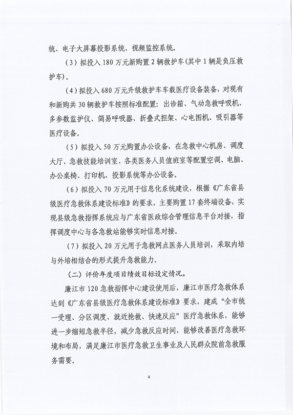 廉江市120急救指挥中心建设项目支出绩效自评报告公示