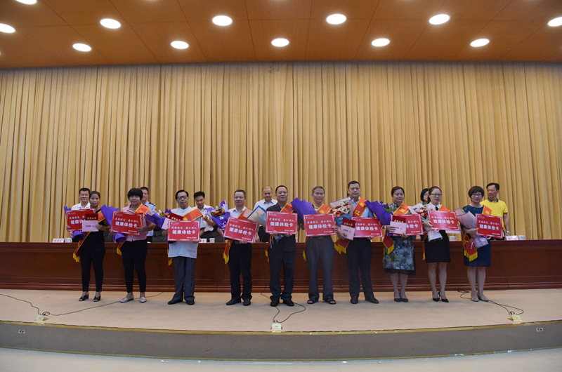 为贯彻落实党的十九大精神和习近平新时代中国特色社会主义思想,大力培育和践行社会主义核心价值观,在全市营造学模范、做好人,崇德向善的浓厚氛围,助力我市全国文明城市创建,8月24日,我市在人民会堂对今年评选出来的12名首届“廉江道德模范”和10名第二届“廉江好人”进行表彰。市人大常委会党组书记、主任李世东,市委副书记、政法委书记陈典聪,市委常委、市委办主任关维荣,市人大常委会副主任李玲,副市长、市公安局局长江浩明,副市长黄生,市人民法院院长李建强等领导出席表彰会,并为12名首届“廉江道德模范”和10名第二届“廉江好人”颁发荣誉证书。我院党委委员钟洁云代表医院为“廉江道德模范”、“廉江好人”赠送健康体检卡。