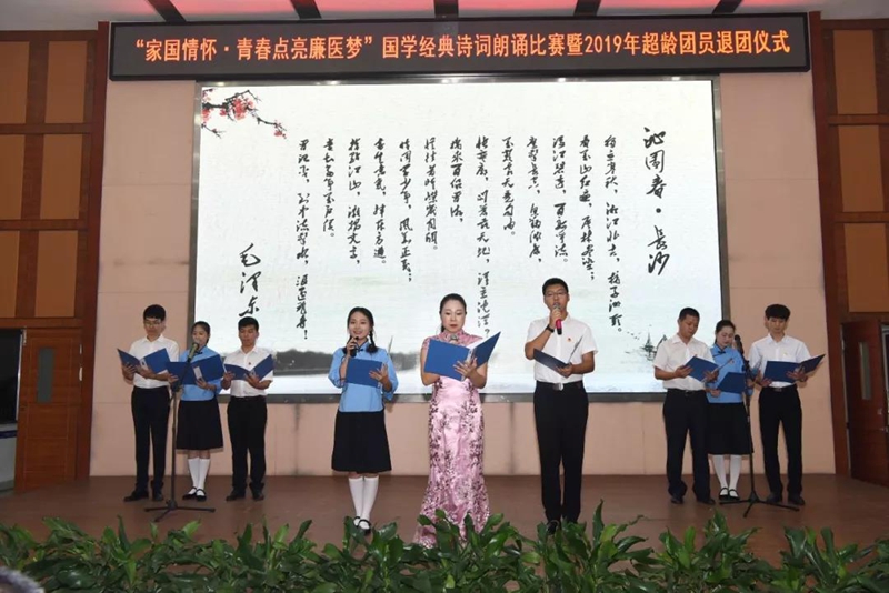 为传承国学经典,引领团员青年通过诵读经典古诗词,感受祖国传统文化的博大精深,推动我院文化建设,并让退团的团员感受到团组织的温暖,进一步坚定理想信念,近日,我院团委在“思想建党·文化建院”的理念指导下,举办国学经典诗词朗诵比赛暨2019年“退团不褪色,青春永飞扬”超龄团员退团仪式。