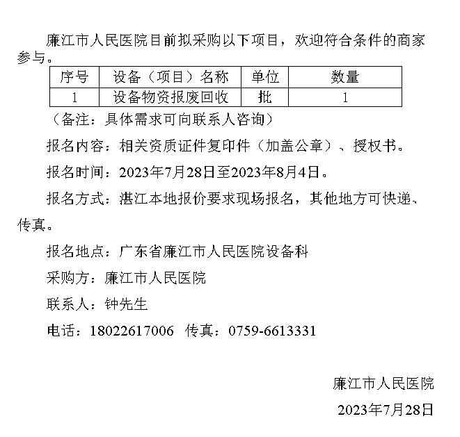 物资采购需求信息公告