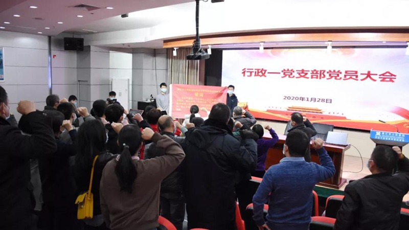 1月28日,我院行政一党支部召开抗击新型冠状病毒感染的肺炎宣誓大会,院党委委员、党委办主任钟洁云出席,行政一党支部所辖的党委办、宣传科、社工部、营养科、健康服务部、体检中心、扶贫办等7个科室全体员工参加会议。