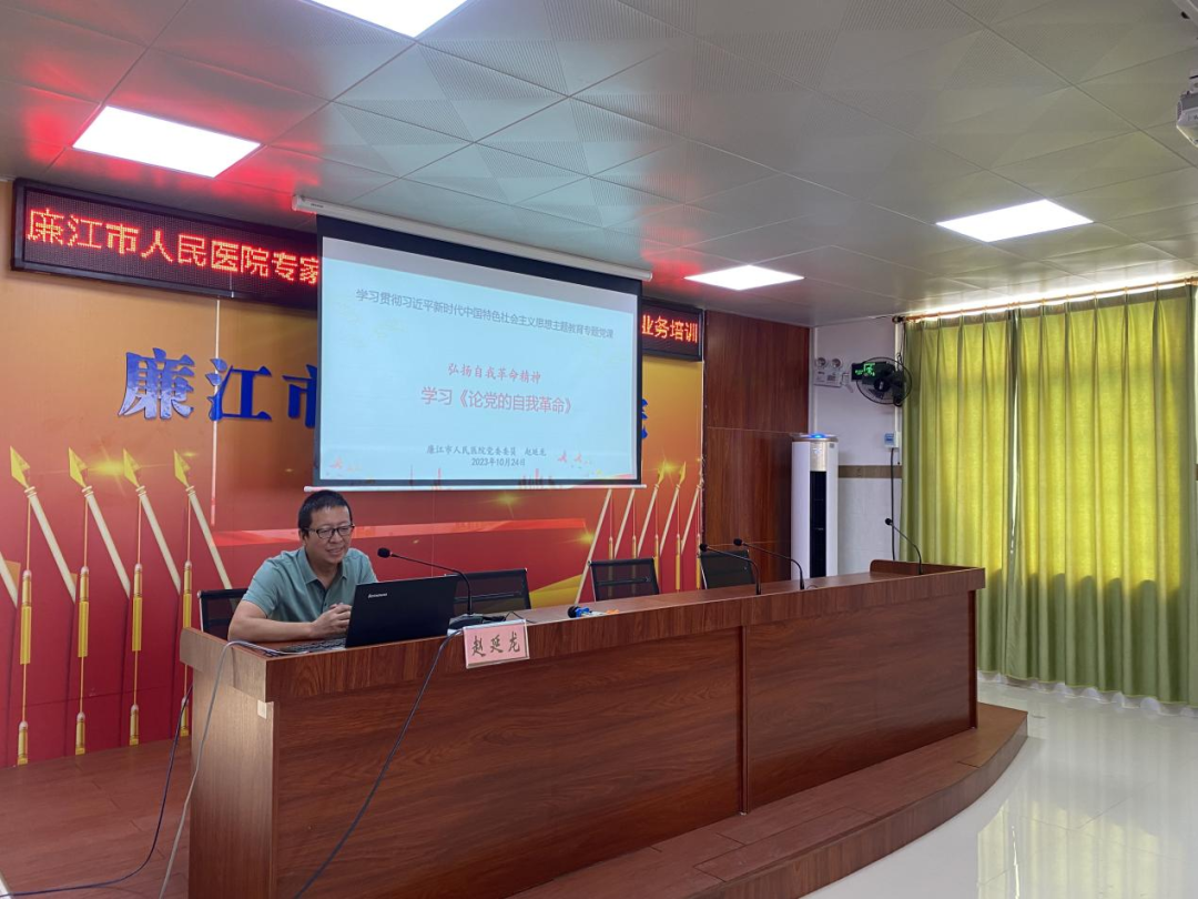活动中,廉江市人民医院党委委员赵延龙以《弘扬自我革命精神 学习<论党的自我革命>》为题,为在场全体人员上了一堂生动的主题教育专题党课,深入浅出地介绍了党的基本理论和党自我革命的历史,使大家对党的自我革命有了更加清晰的认识。