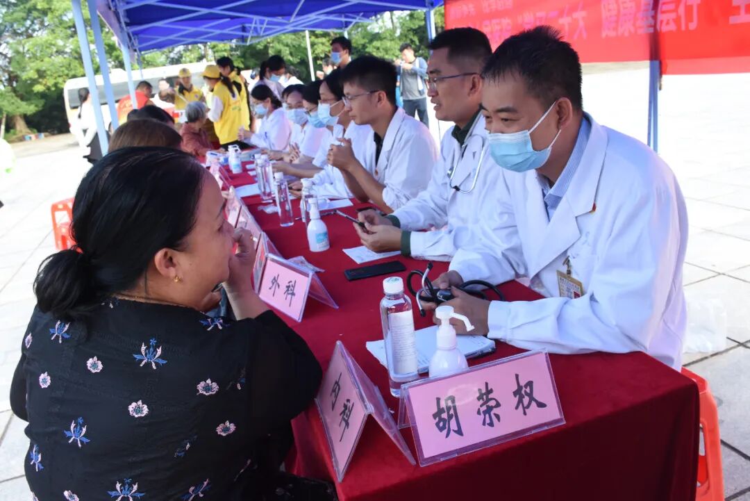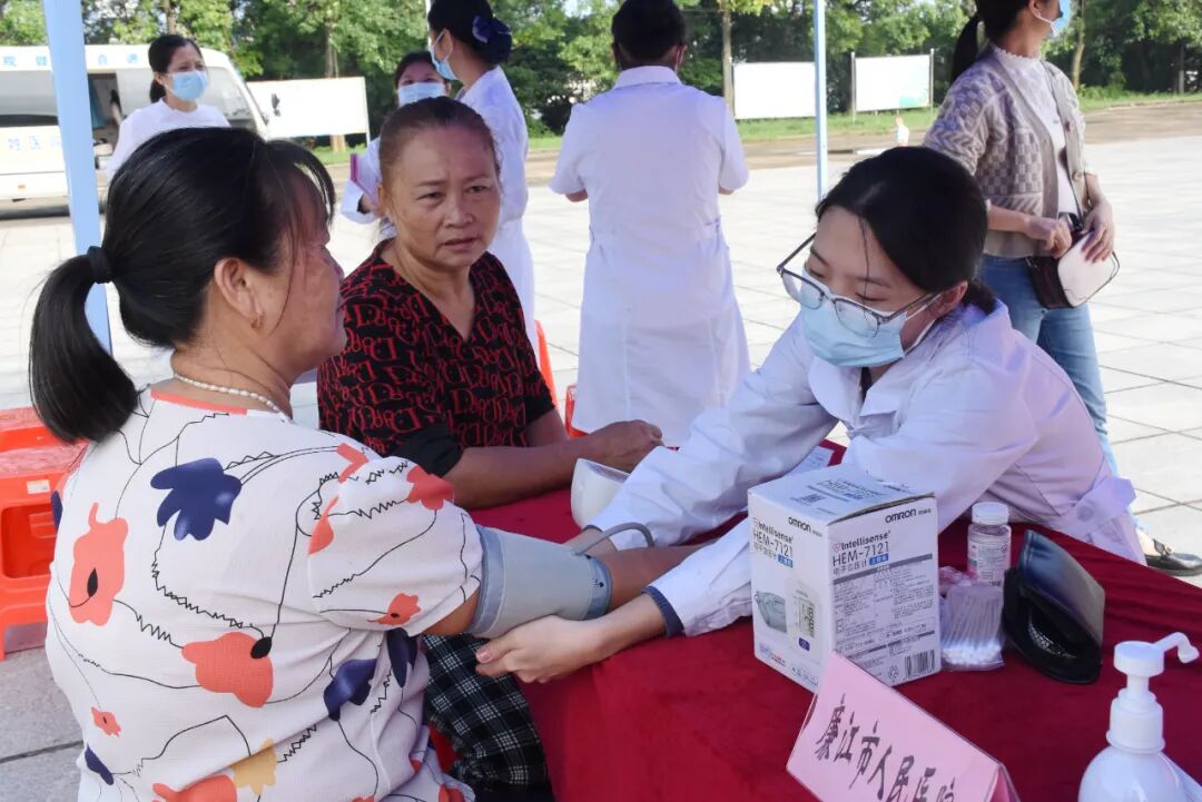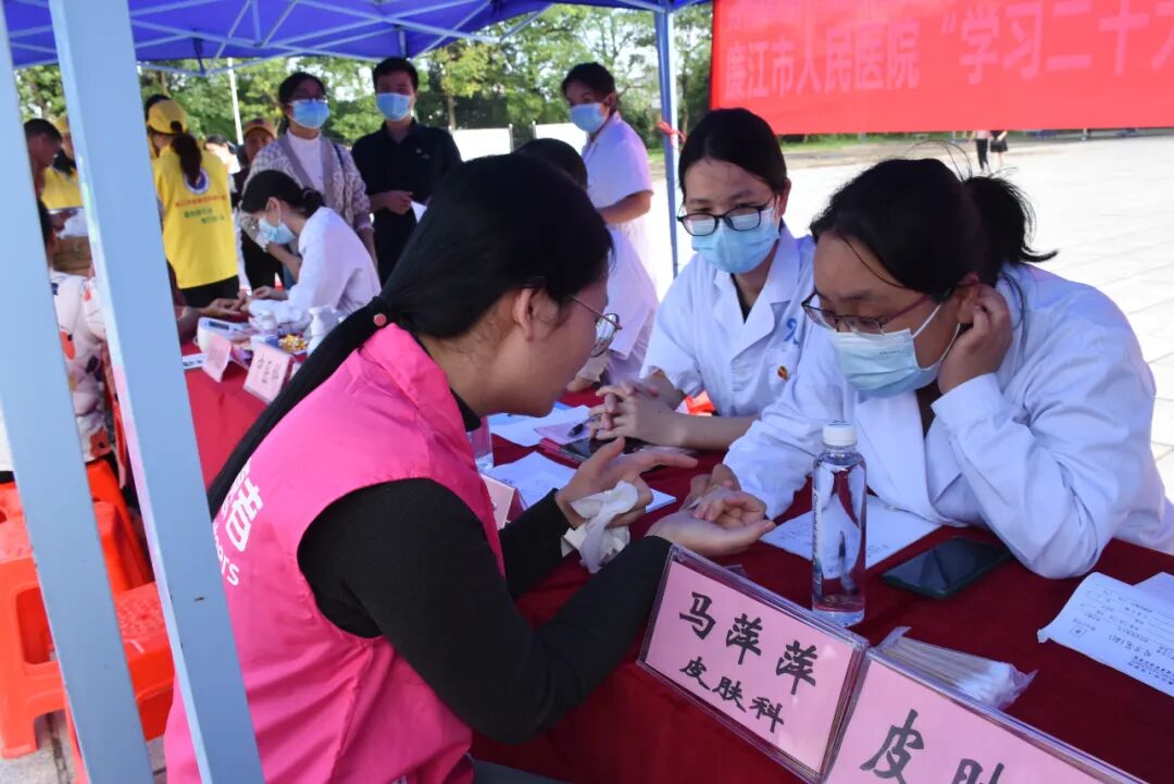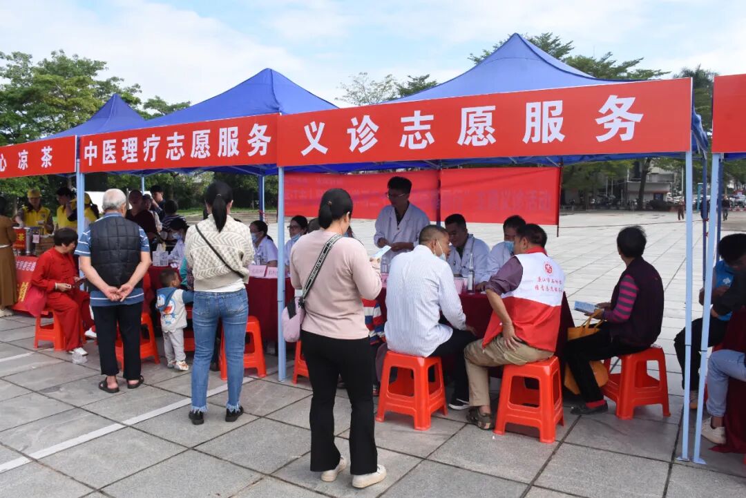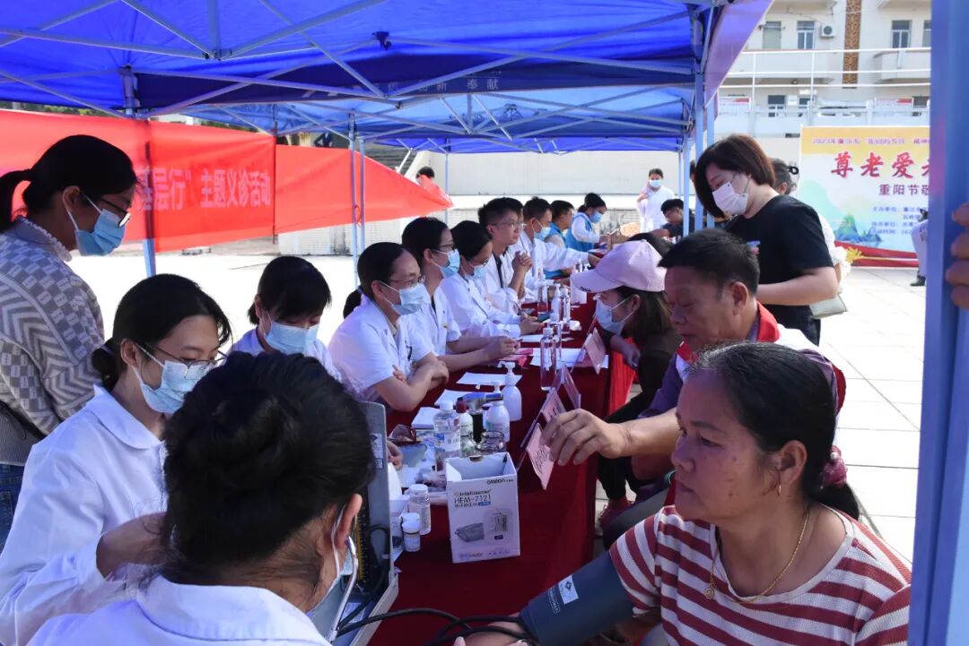 义诊现场,廉江市人民医院中医科、乳腺科、皮肤科、内科、外科、疼痛门诊专家为群众看诊问诊,详细解答各种医疗保健问题。中医科医务人员为有需要的老年人提供健康理疗服务。由党员和青年团员组成的医护志愿者为老年人测血压、血糖,同时发放健康宣教资料,提高群众的健康意识。活动受到群众热烈欢迎,“感谢医生们为我们免费服务,他们工作耐心细致,重阳节举办的这次义诊很有意义!”